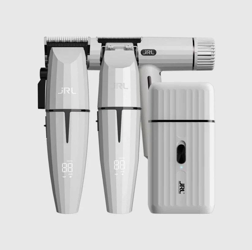 Fedezze fel a stílusos fehér JRL Ghost 3 Limitált Kiadást, a teljes professzionális szettet: Clipper (2020C-W), Trimmer (2020T-W), Shaver (SF Pro) és Hajszárító (Forte Pro). A forradalmi Reset IQ Charge és Smart Clip technológiáknak köszönhetően páratlan pontosságot és üzemidőt garantál. Kifejezetten fodrászszalonoknak és borbélyoknak tervezték, akik a csúcsteljesítményt és az elegáns megjelenést keresik.